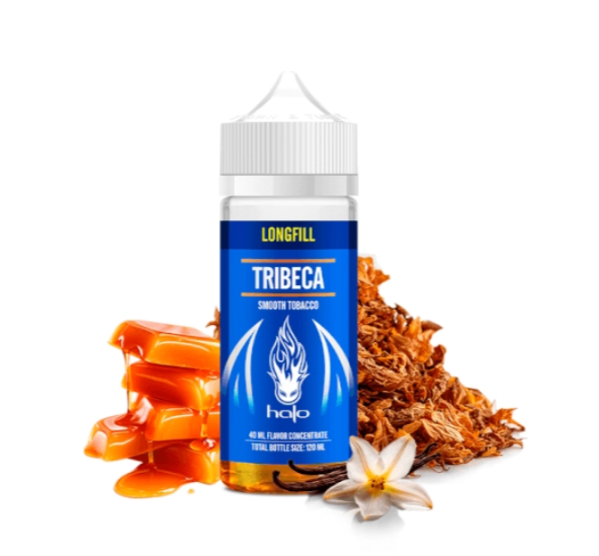 Halo Blue Series Tribeca Longfill 40ml. Tribeca es un e-liquid reconocido mundialmente que ha establecido el estándar de la industria. Su sabor suave y equilibrado combina un tabaco trascendental con un toque perfecto de vainilla caramelo, creando un final dulce y exquisito que lo hace único.