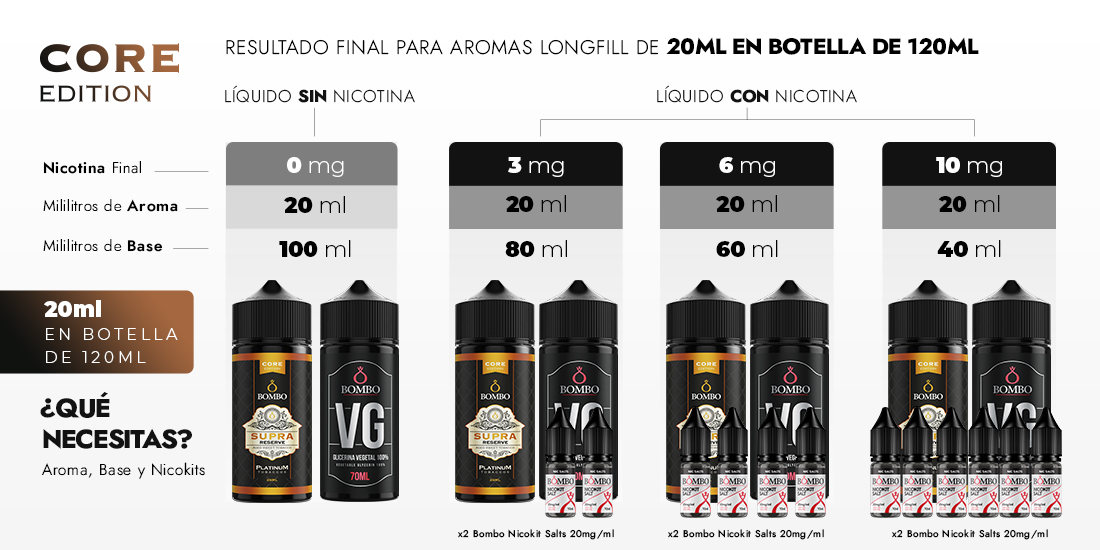 El aroma Nutty Supra Reserve en formato Longfill de Platinum Tobaccos by Bombo Core Edition es una variación de Supra (Mejor Tabaquil en Vapexpo 2022), famoso por su sabor a tabaco dulce con matices acaramelados y tostados, combinado con deliciosa crema de frutos secos.