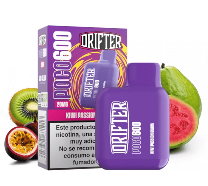 Drifter Disposable Poco 600 Kiwi Passionfruit Guava 20mg 2ml – Mezcla tropical de kiwi, maracuyá y guayaba