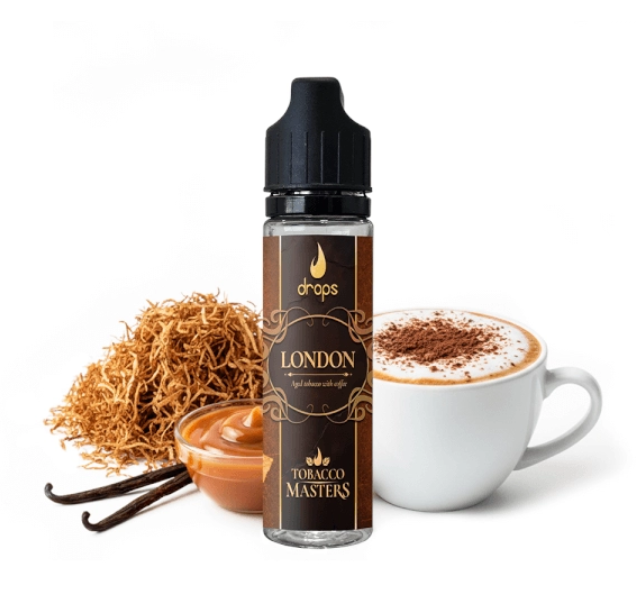 Drops Tobacco Masters London Longfill 6ml, es una sofisticada arquitectura tabaquil sobre base RY4. La receta incorpora componentes aromáticos selectos que aportan una nota floral sutil, elevando el aroma de cappuccino hacia un acabado seco, distinguido y de dulzor contenido.