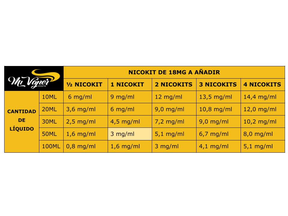 NicoKit con diferentes niveles de nicotina y porcentajes de VG y PG para añadir nicotina a tu base o líquido Booster.