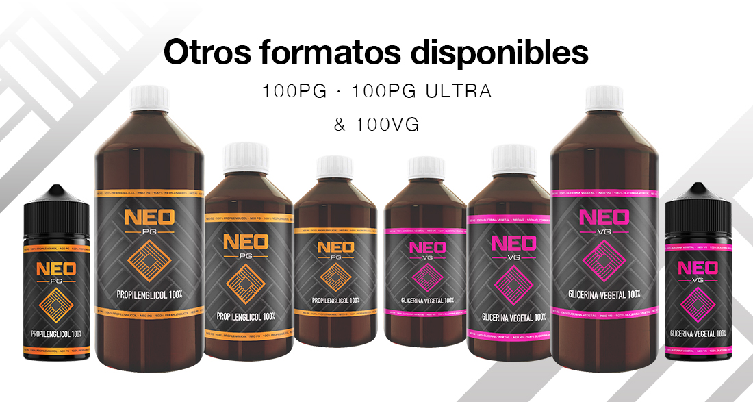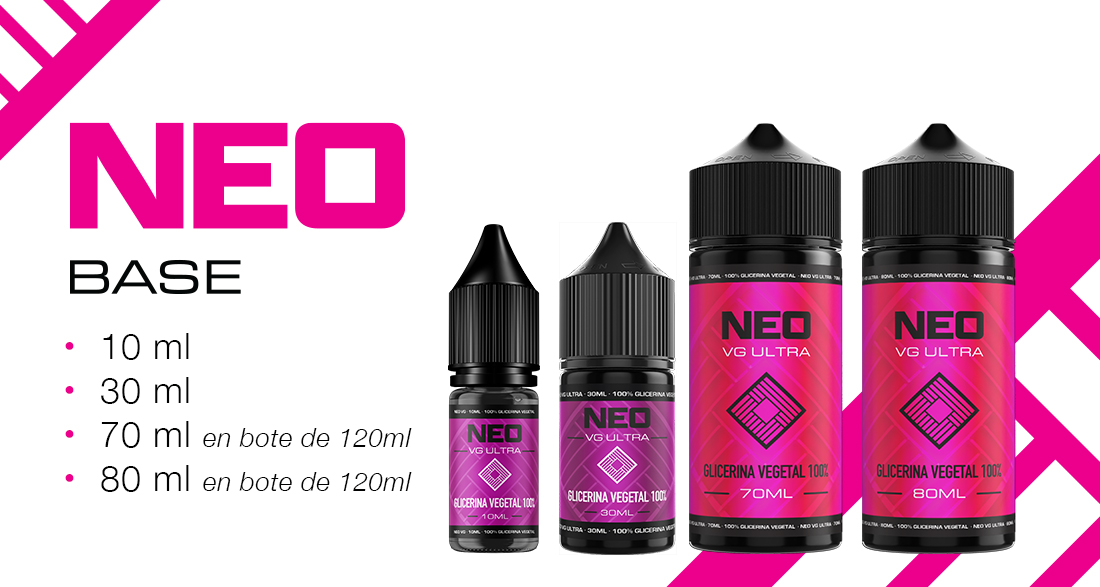 Neo Base es una marca que destaca por su amplio catálogo de productos. Además de la base Ultra 100% VG, también ofrece bases 100% VG, bases 100% PG y bases Ultra 100% PG.